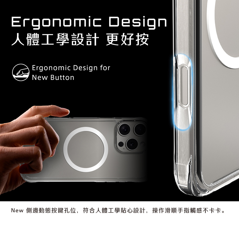 ◇側邊新動態按鍵孔位設計,人體工學手指操作不疲累