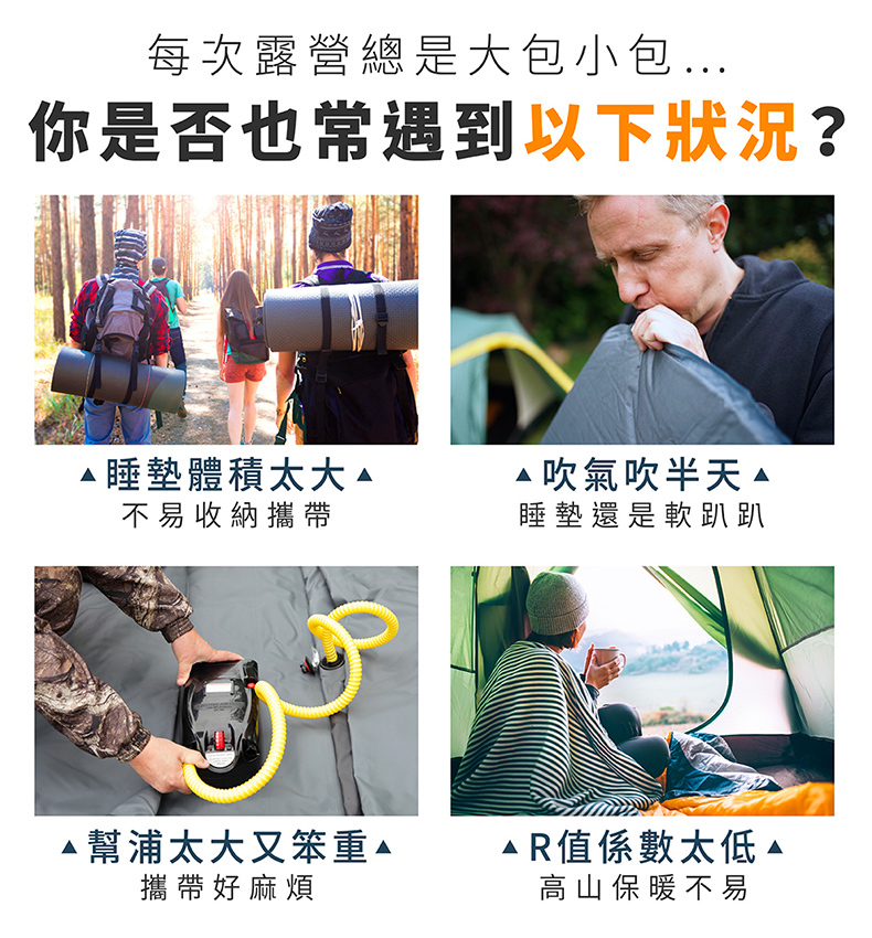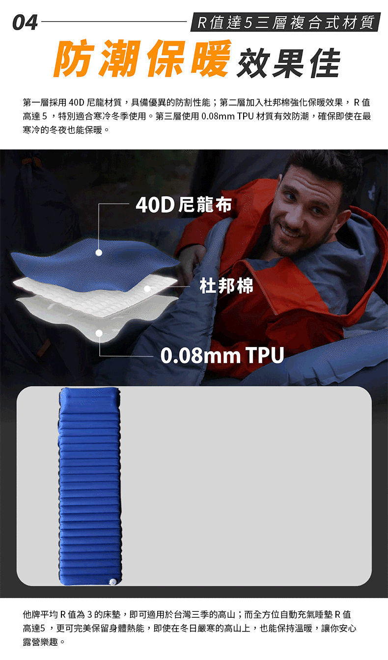 ◇睡墊R值=5,能夠抵擋任何極端氣候