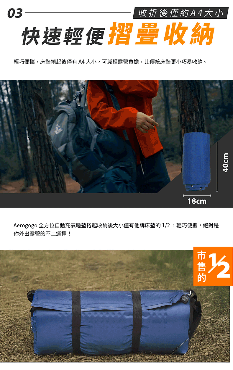 品名:Aerogogo 全方位自動充氣睡墊(藍色)