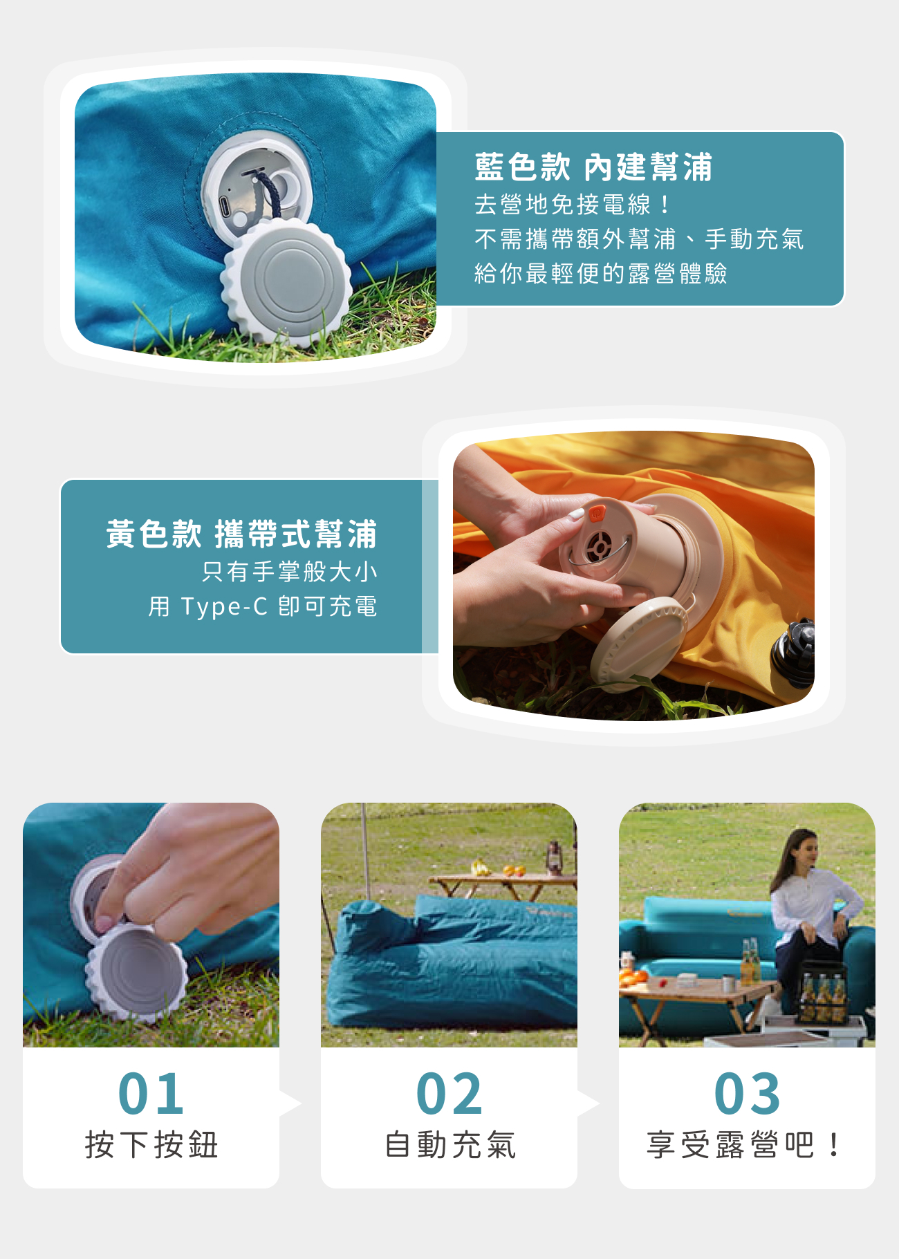 ◇一鍵快速,自動充氣