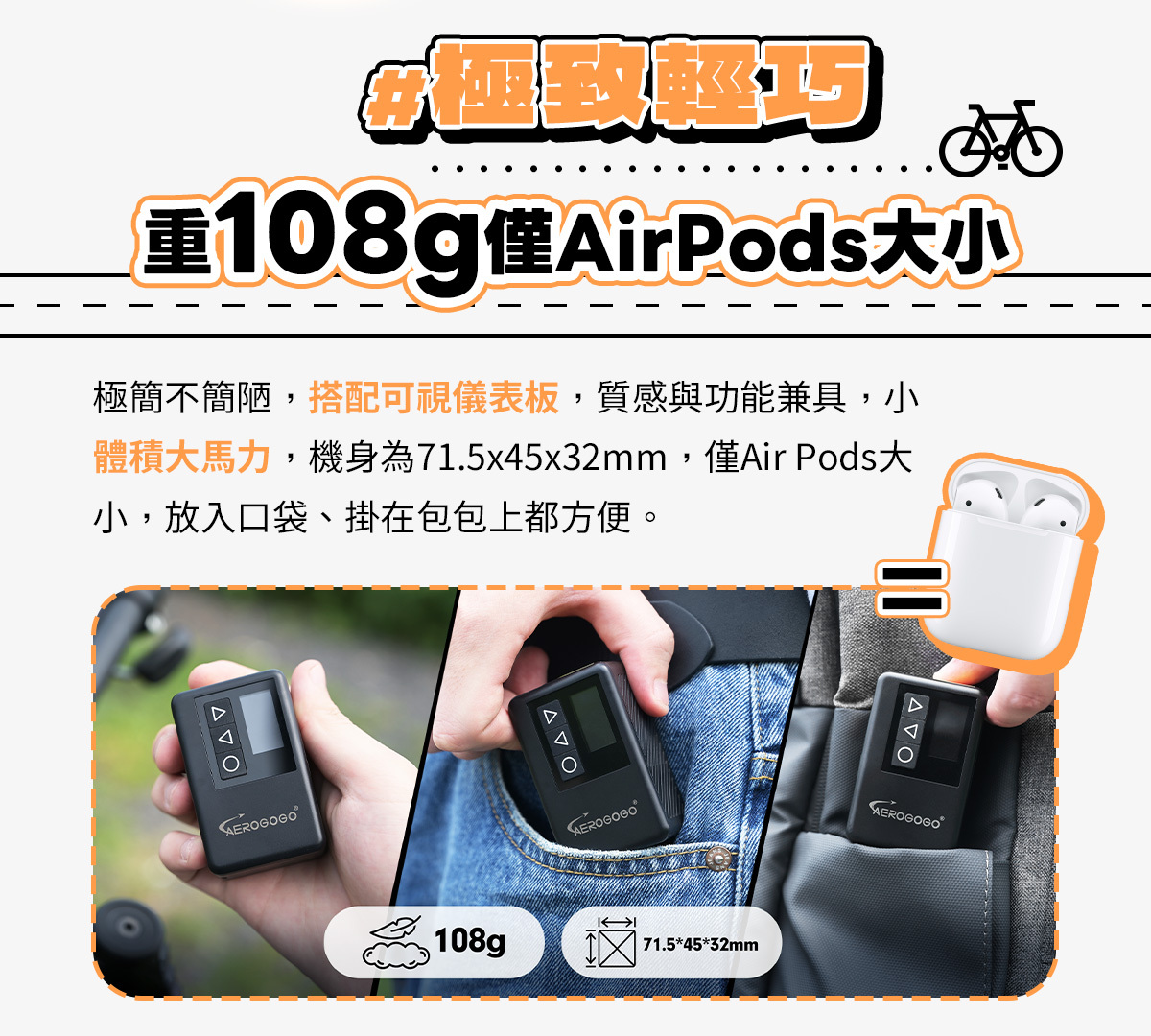 #極致輕巧|重108g僅Air Pods大小