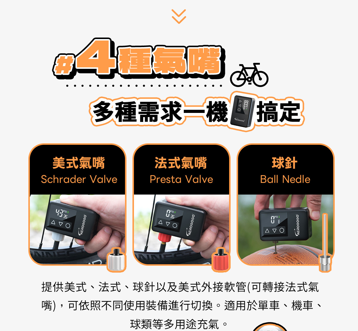 Q:GIGA!自行車幫浦支援哪些充氣設備呢?