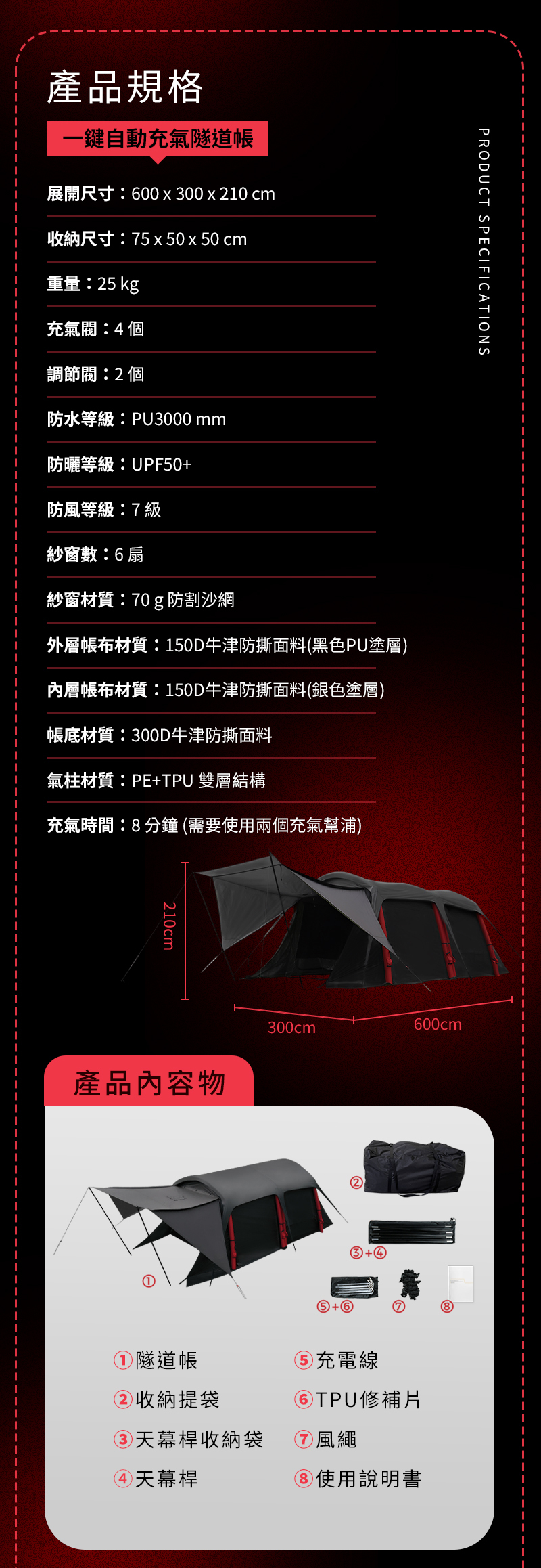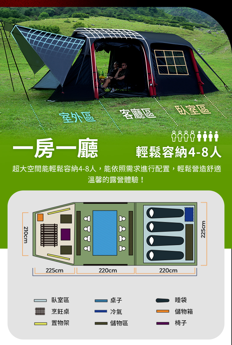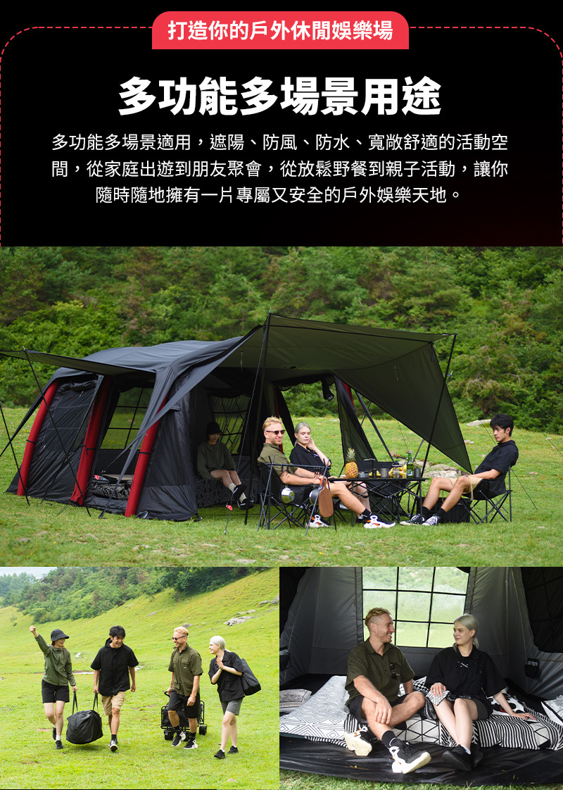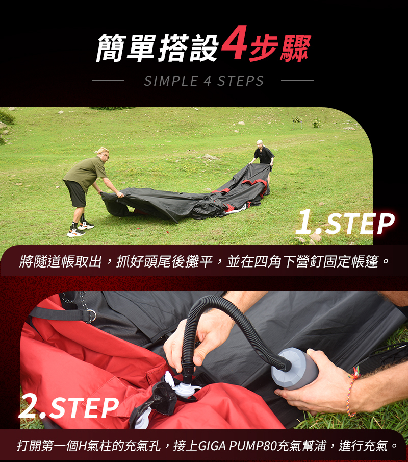 3.搭設前以及收納時請務必確認周遭無尖銳物品,避免刺穿帳篷以及氣柱結構。