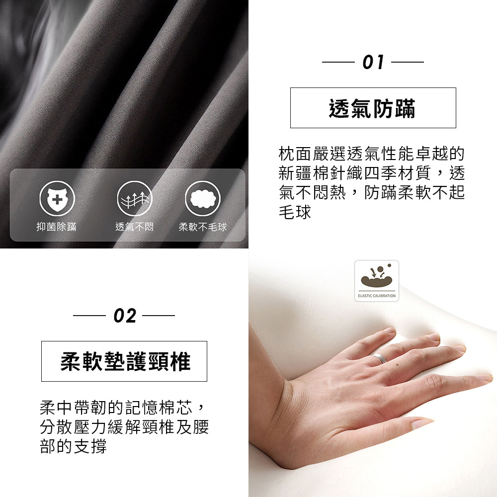 主要成分:四季透氣材質、記憶眠枕芯