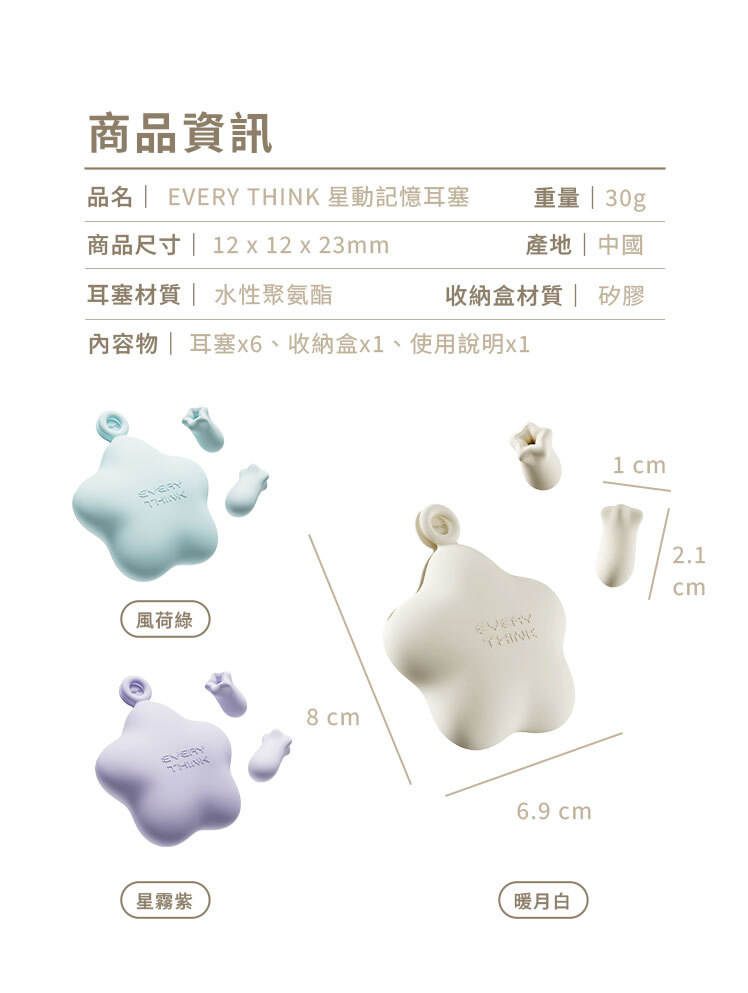 產品內容物:耳塞 x6、收納盒 x1、使用說明 x1