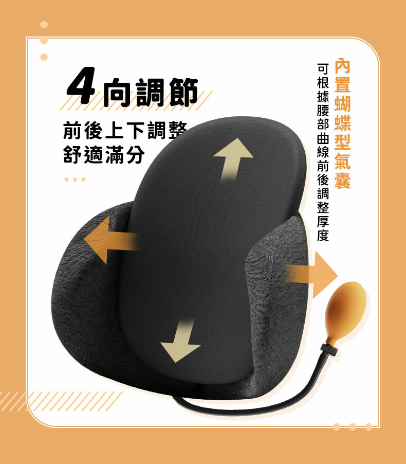 ◇內置蝴蝶形氣囊 緩解腰部厚薄前後調節