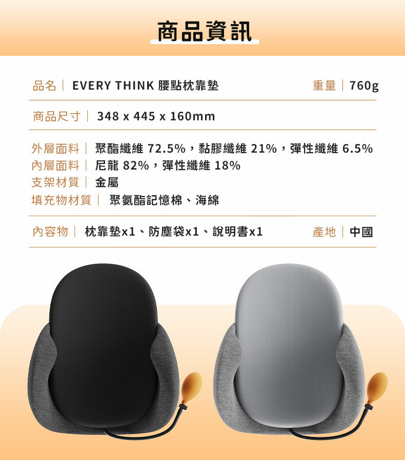 產品內容物:枕靠墊x1/防塵袋X1/說明書X1