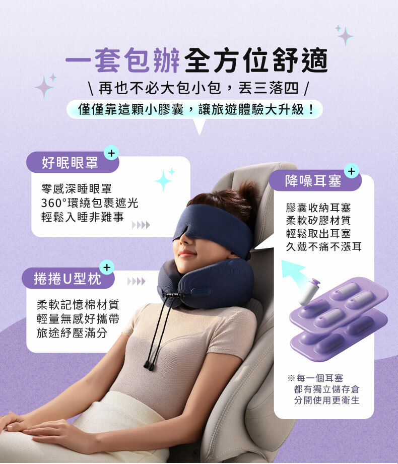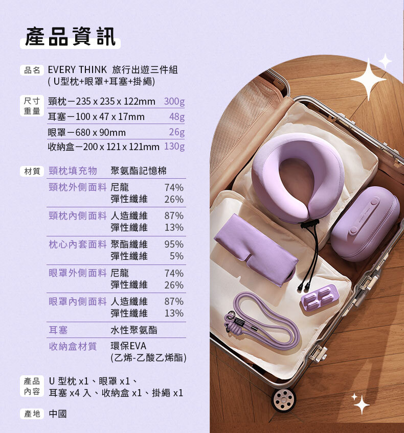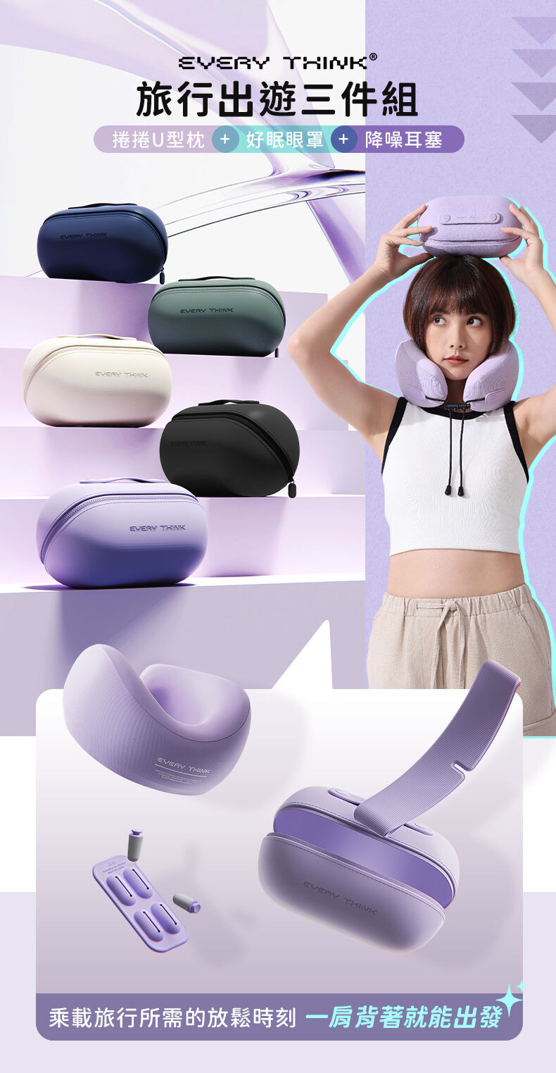 品名:EVERY THINK 旅行出遊三件組 (U型枕+眼罩+耳塞)