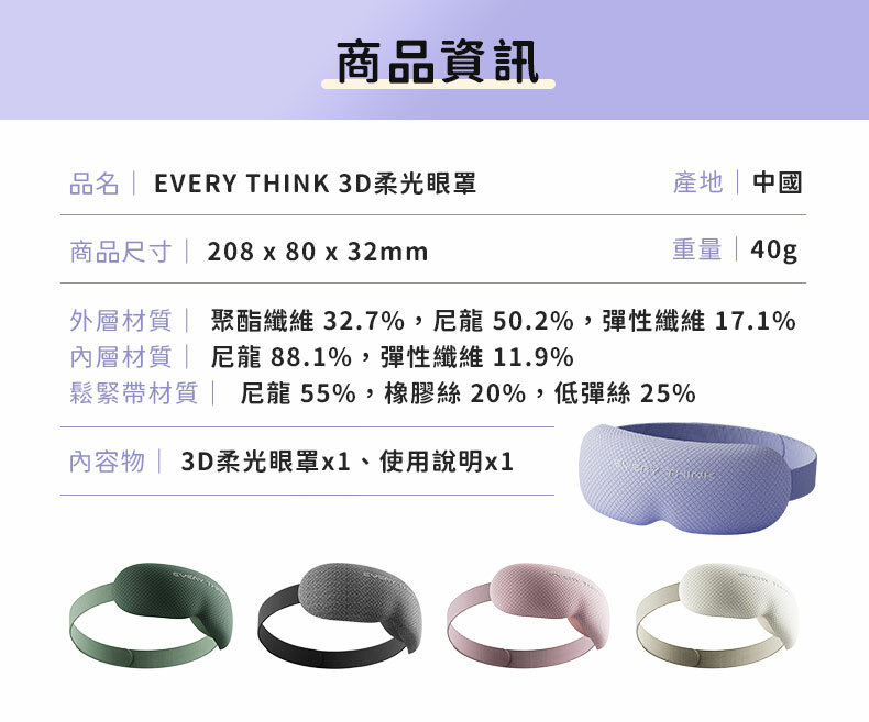 品名 : EVERY THINK 3D柔光眼罩