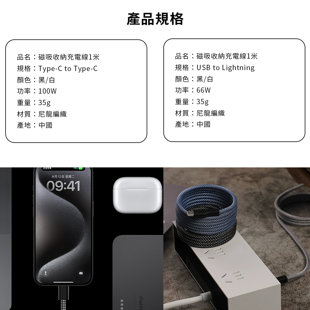 品名:磁吸收納充電線(1米)