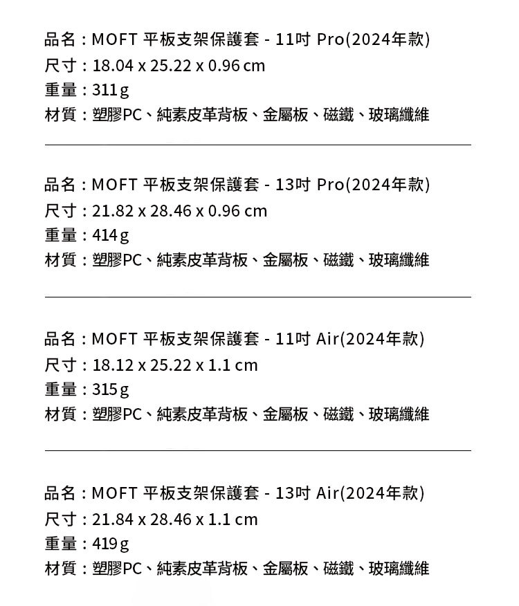 品名 : MOFT 平板支架保護套(含筆托+殼) 11吋.13吋Air / Pro(2024年款)