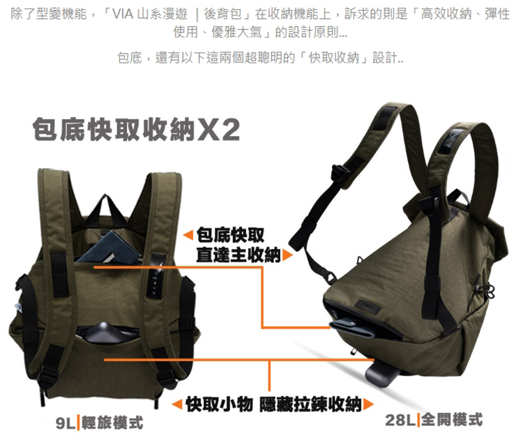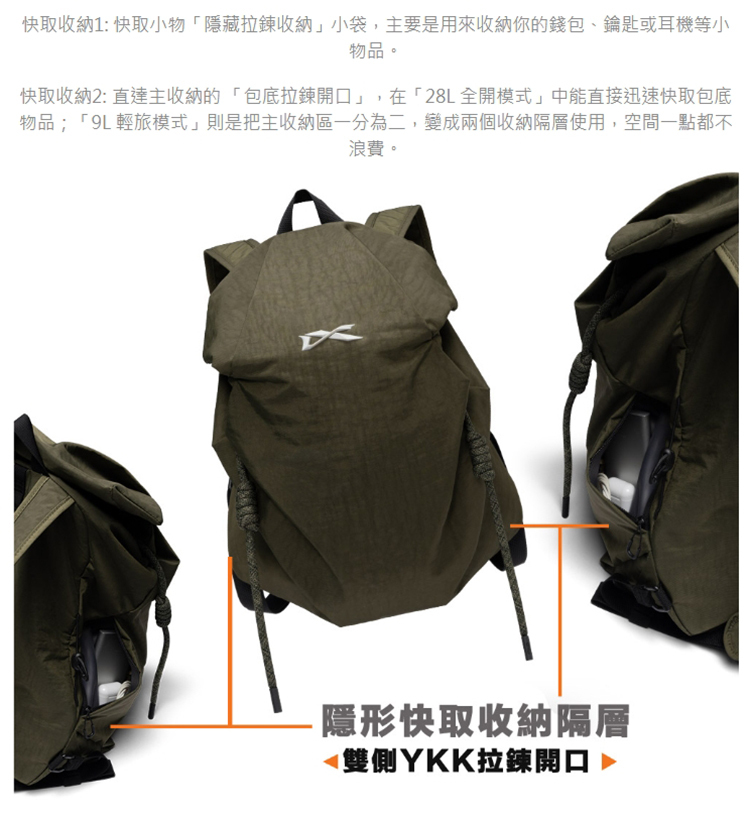 ◇拉繩束口、隱藏拉鍊設計|高效快取收納