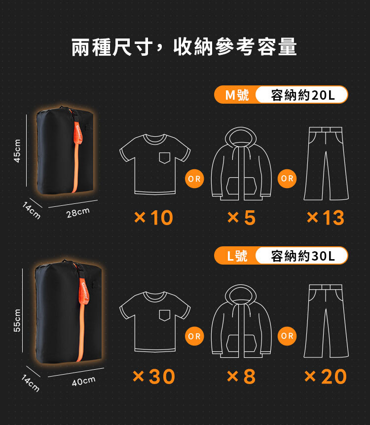 ◇可壓縮20件以上衣物(實際依衣料厚度為主)