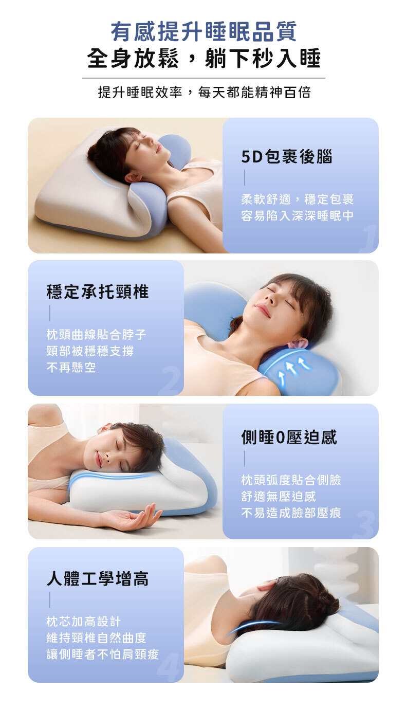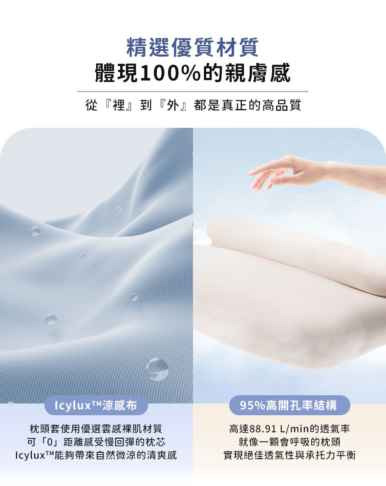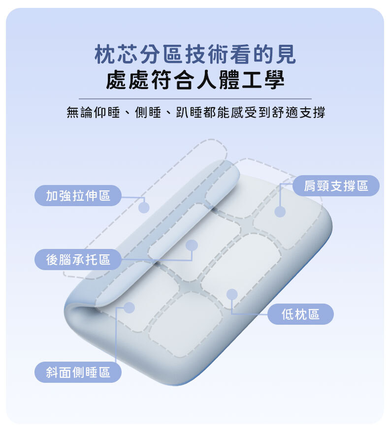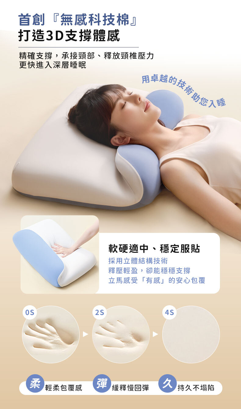 ◇無感科技棉芯,包覆頸椎放鬆更快眠