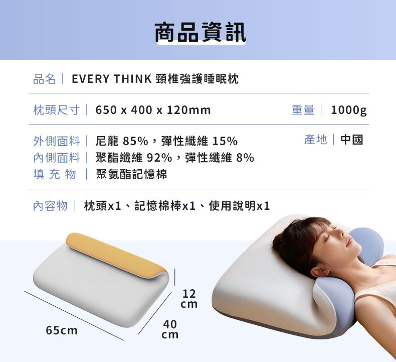 內容物:枕頭x1、記憶棉棒x1、使用說明x1