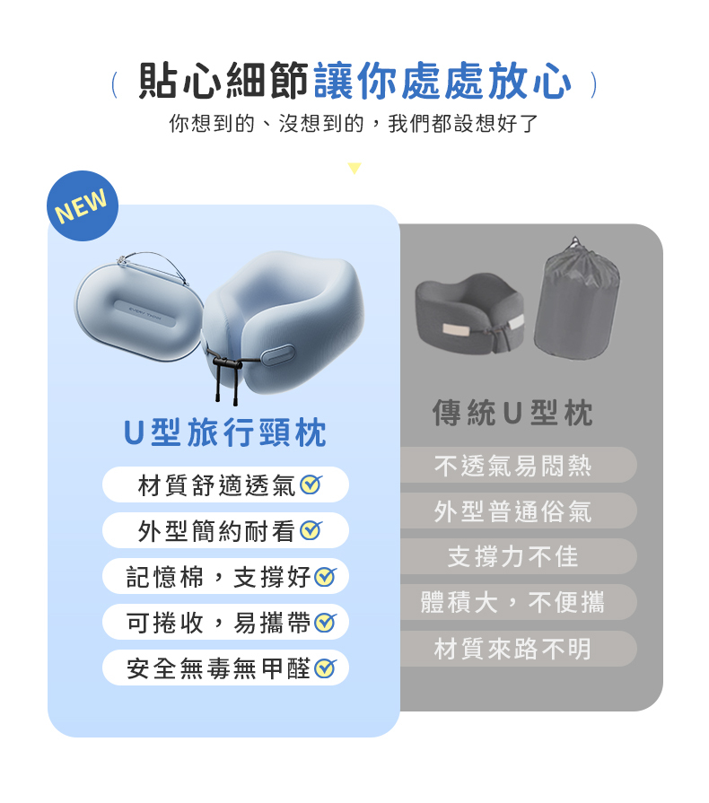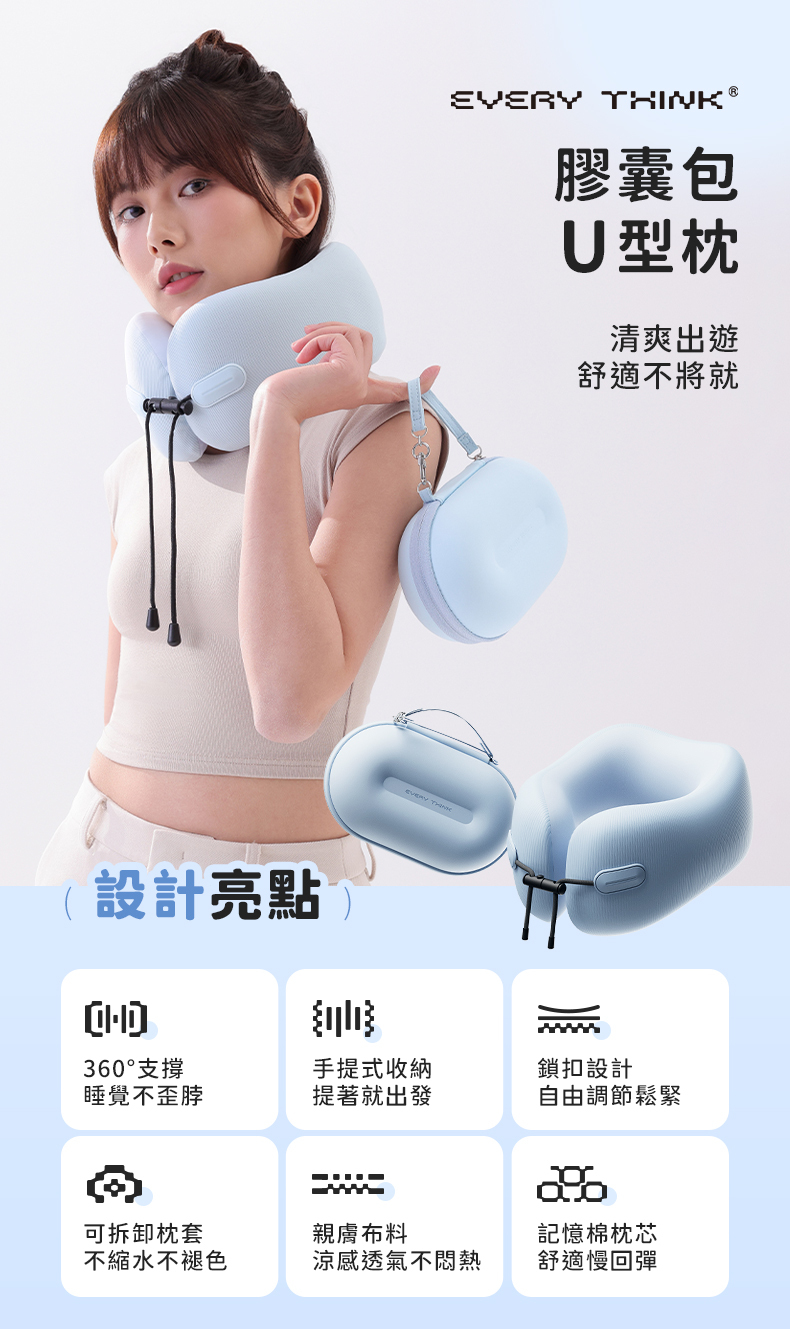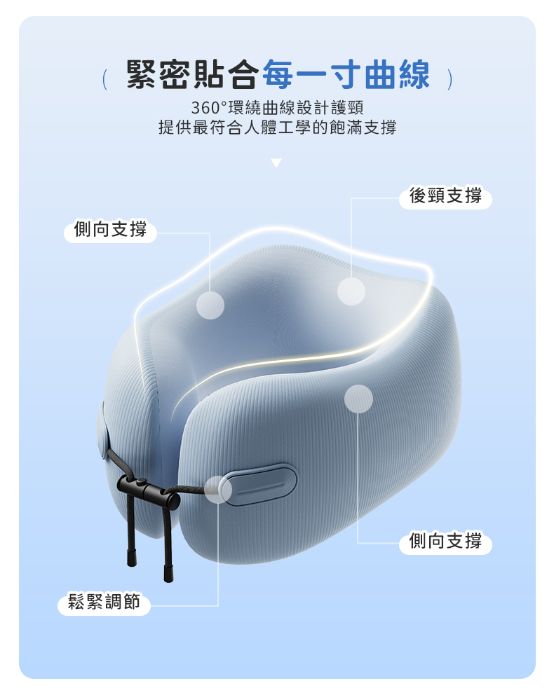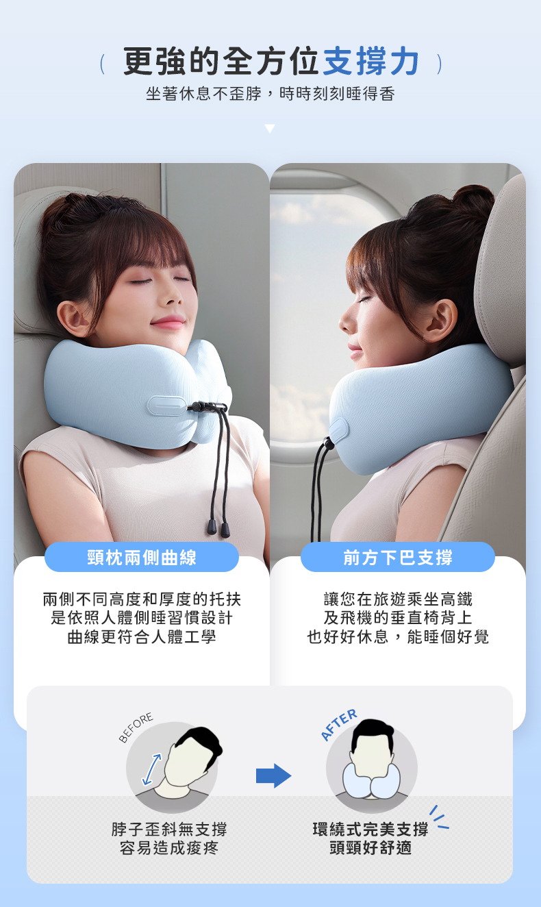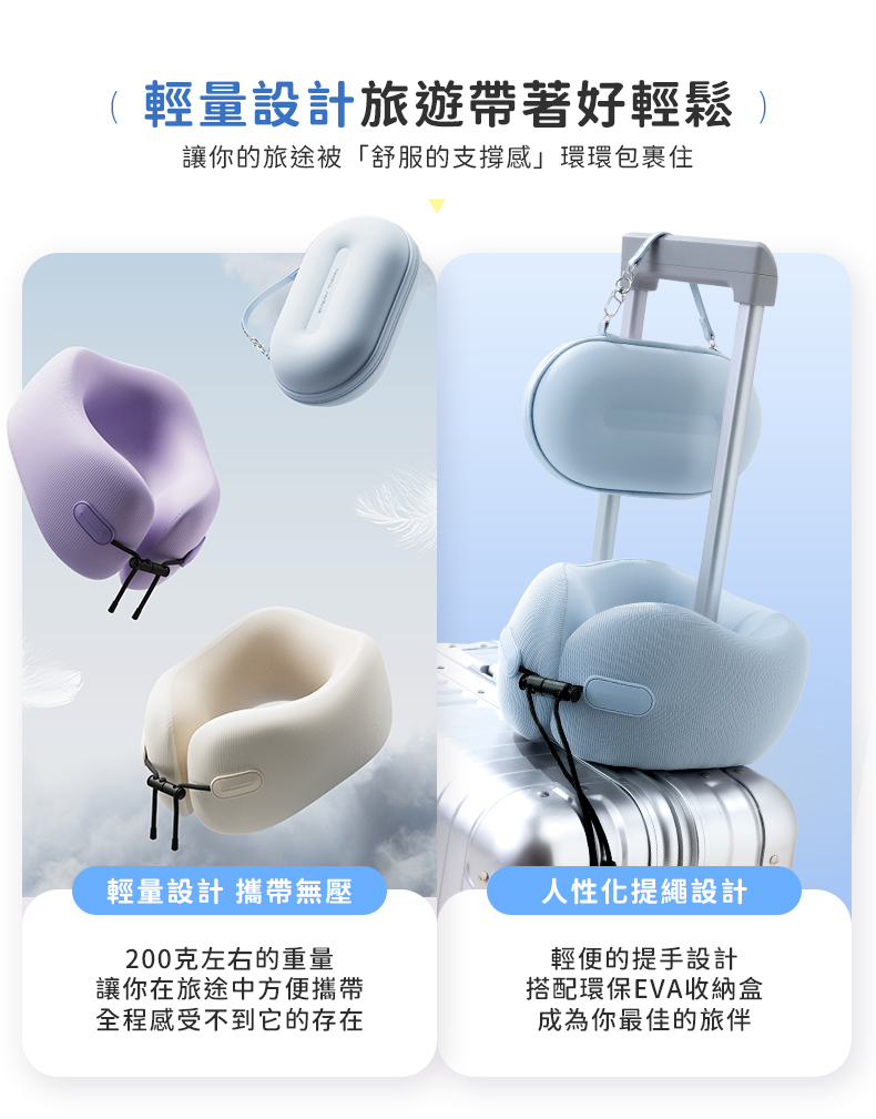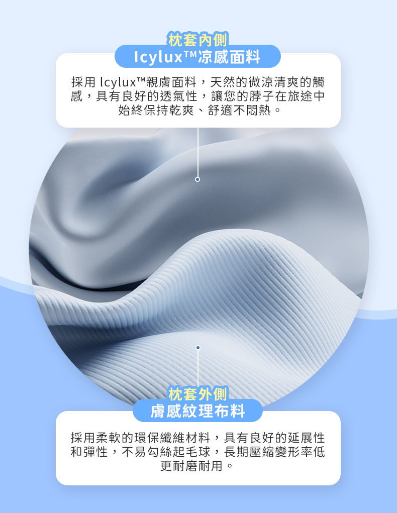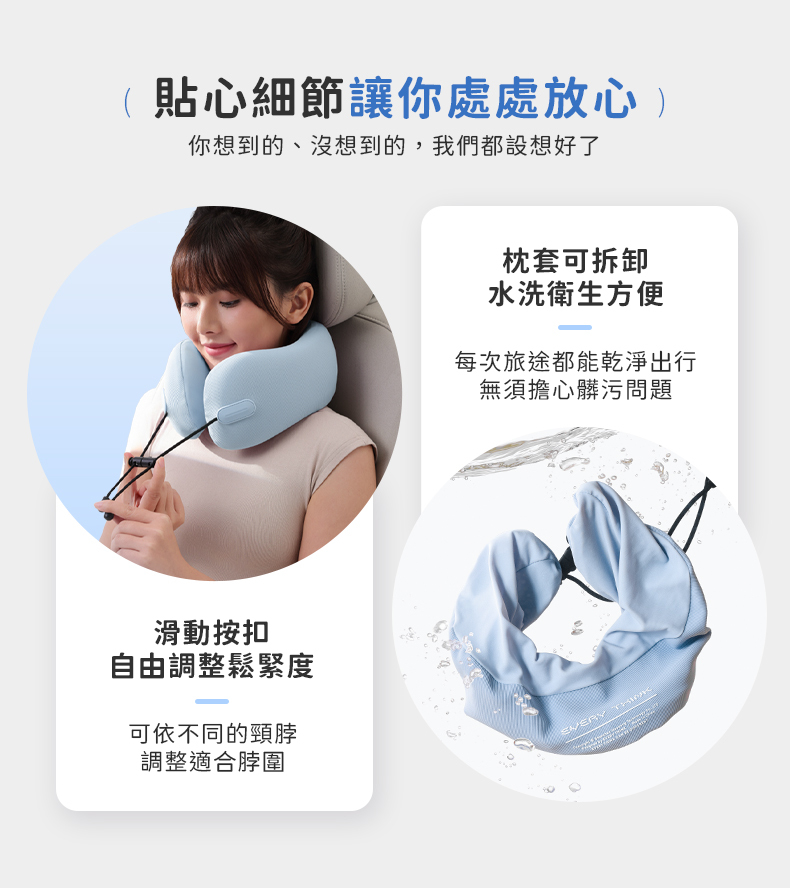 1. 頸枕設有拉鍊,可將枕頭套拆出單獨清洗。