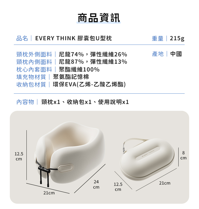 產品內容物:頸枕x1、收納包x1、使用說明x1