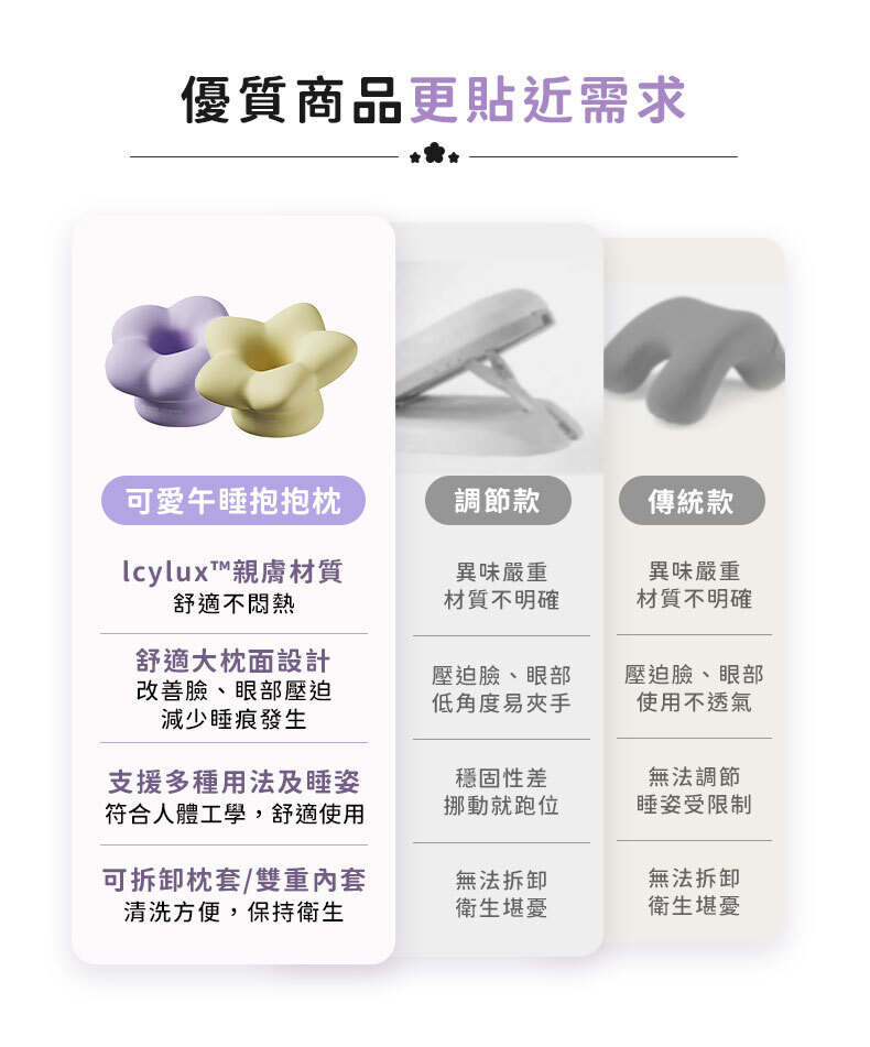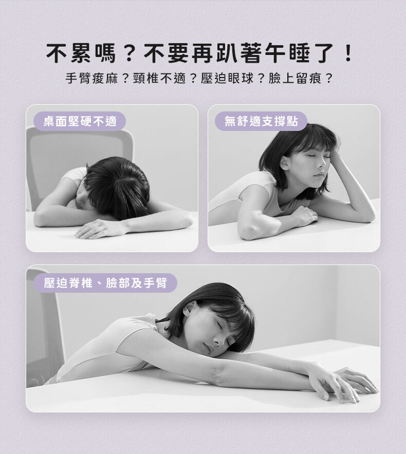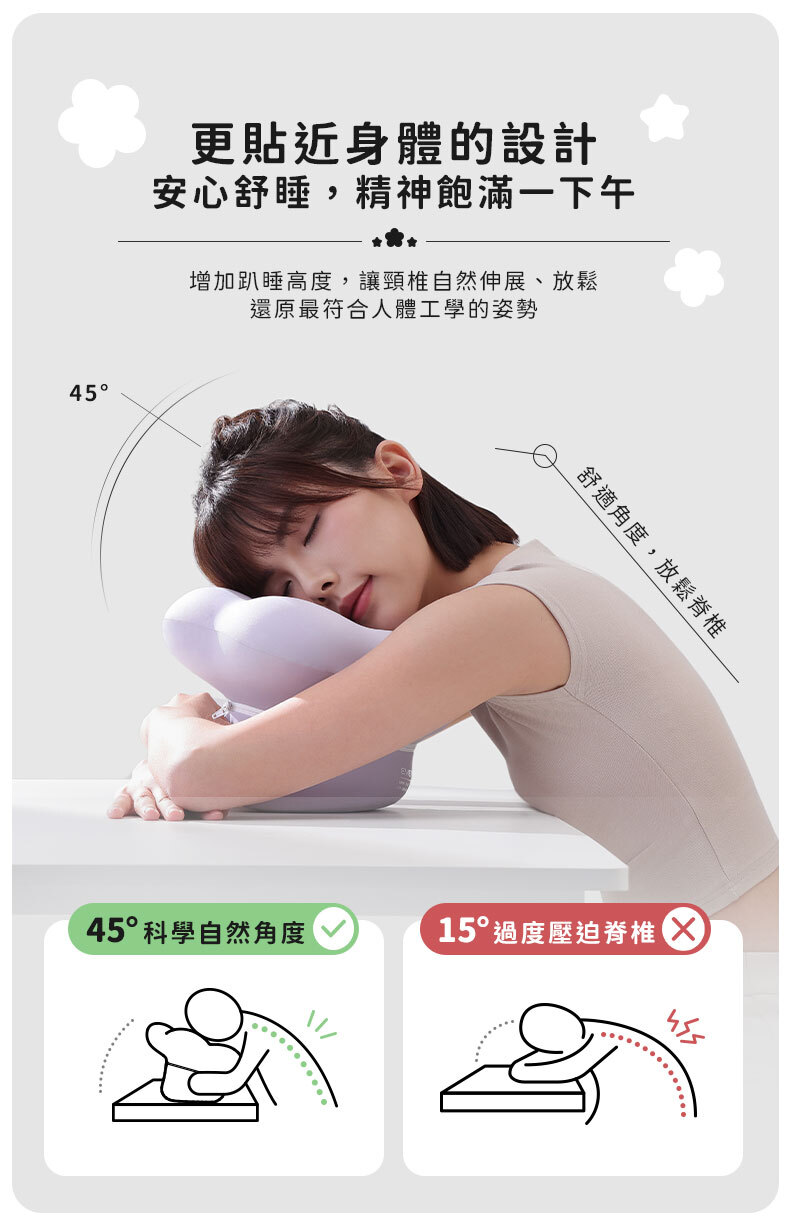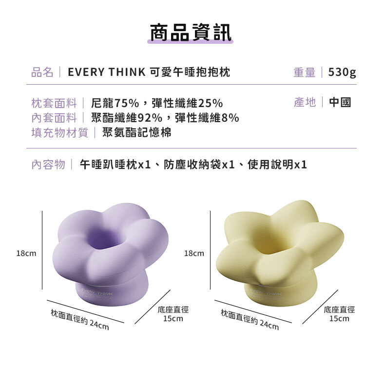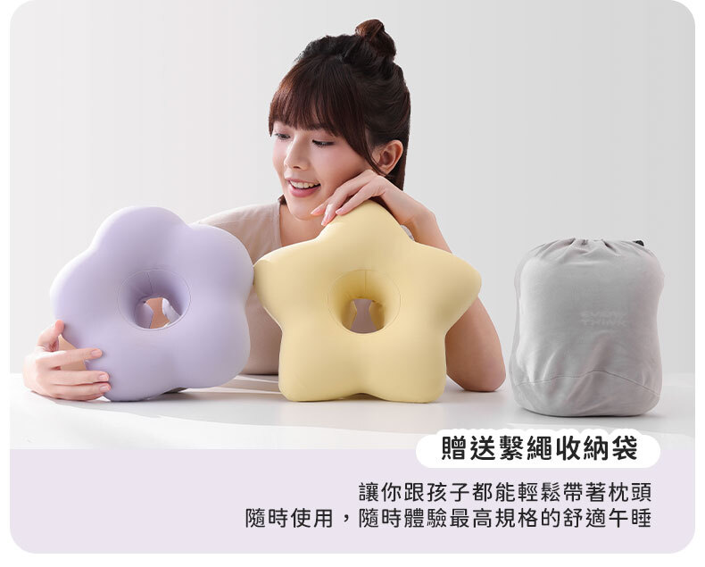 產品內容物:午睡枕x1、防塵收納袋x1、使用說明x1