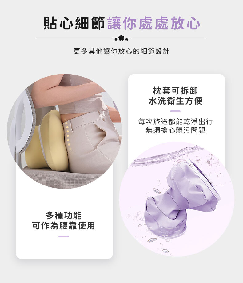 1. 頸枕設有拉鍊,可將枕頭套拆出單獨清洗。