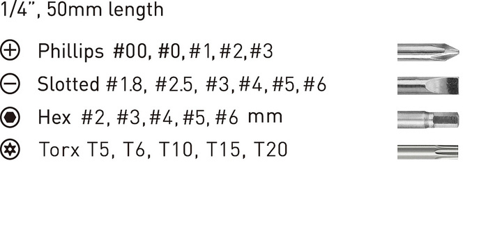 內容物:熊-三向棘輪起子頭握把1只、小握把1只、1/4", 50mm 長起子頭(全部共21支)