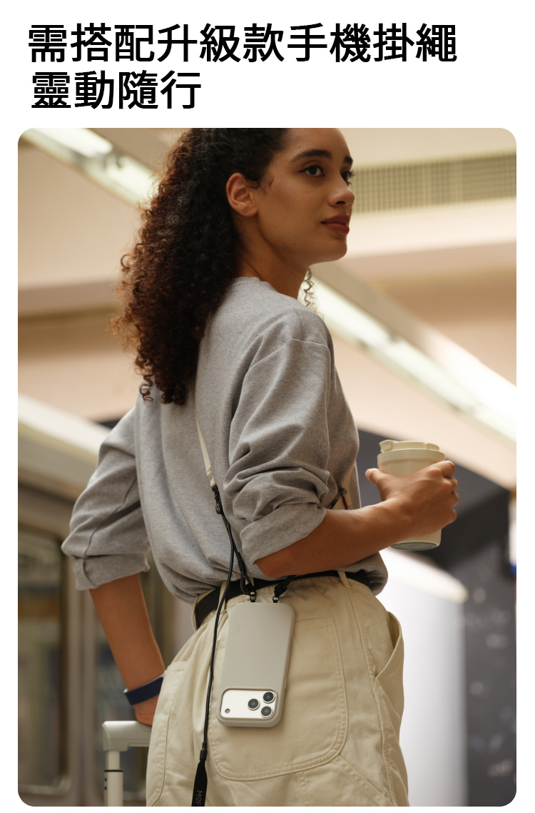 ◇隱藏式凹槽結構,需搭配升級款手機掛繩