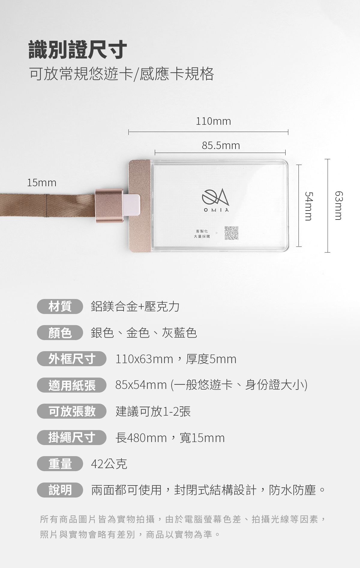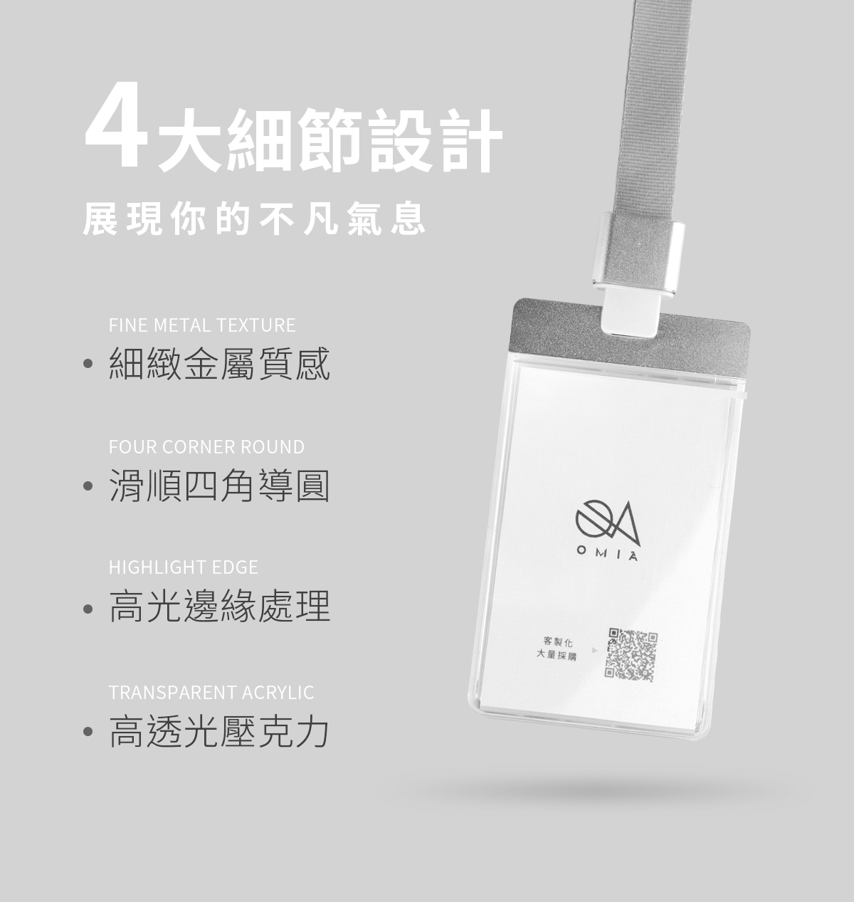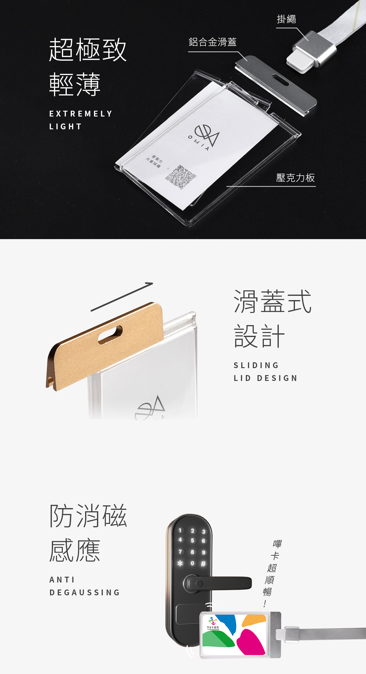 品名:OMIA 質感鋁合金上蓋透明壓克力識別證(直式)材質:鋁鎂合金+壓克力