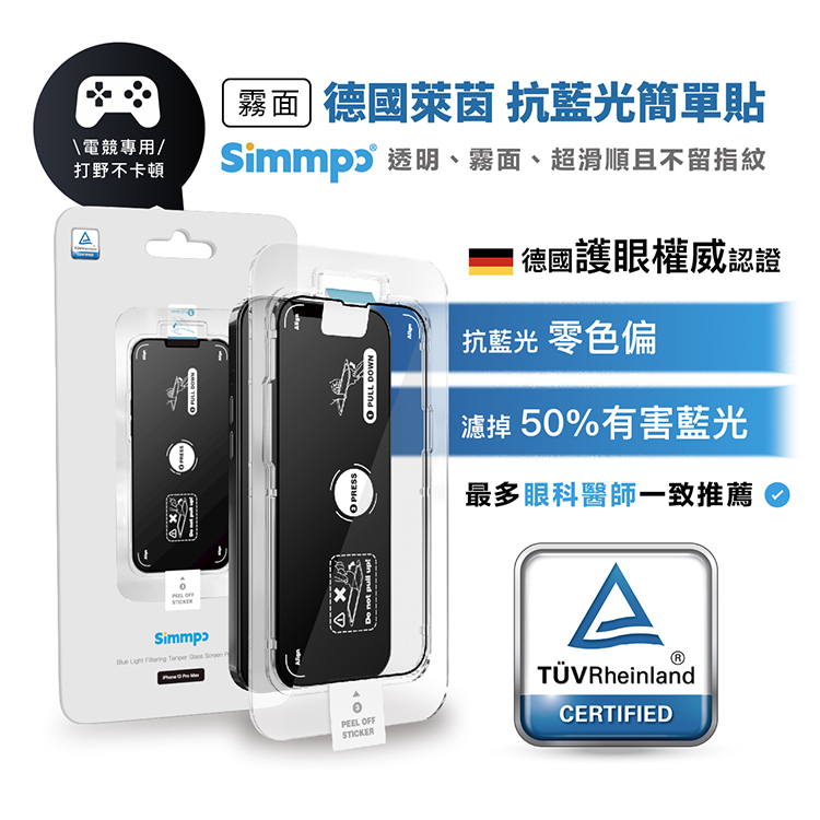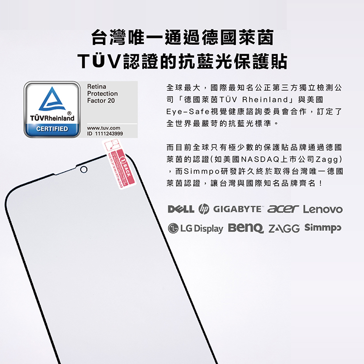 ◇全球第一款通過「德國萊茵TÜV抗藍光認證」的電競版霧面保護貼。