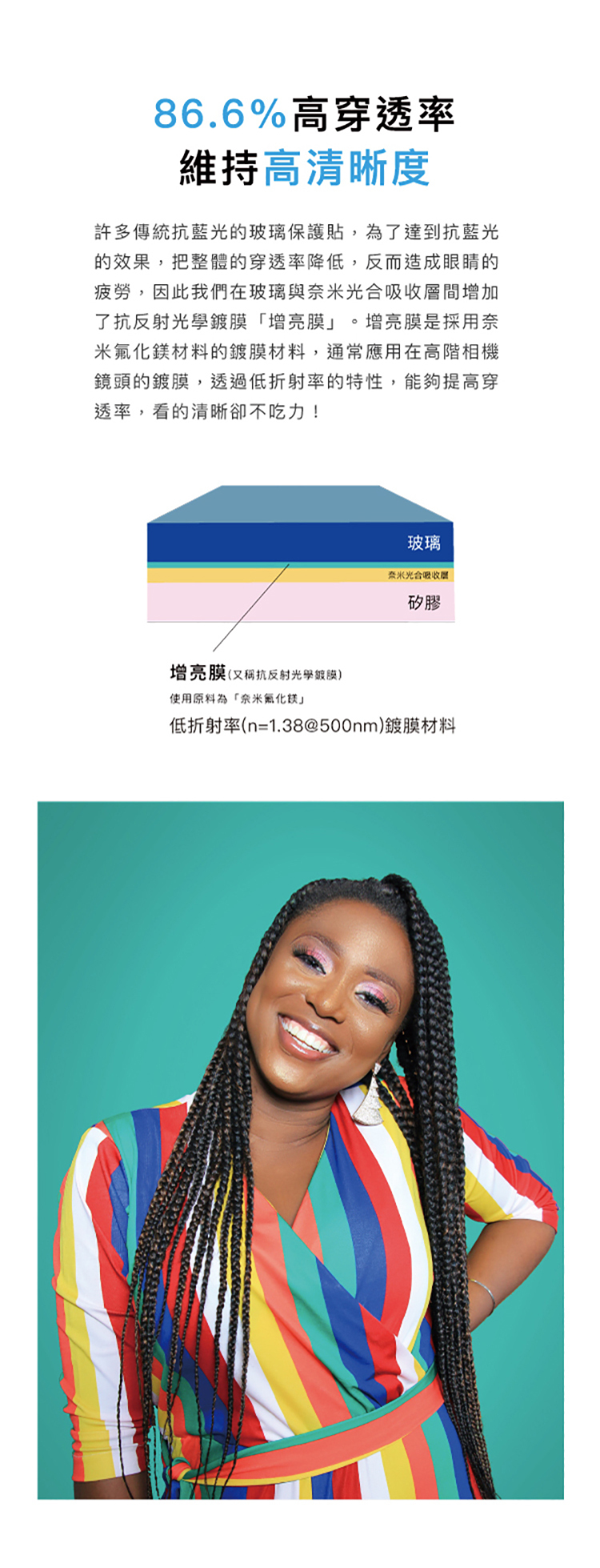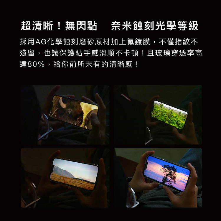 ◇超清晰無閃點!奈米蝕刻光學等級,穿透率高達80%,給你前所未有的清晰!