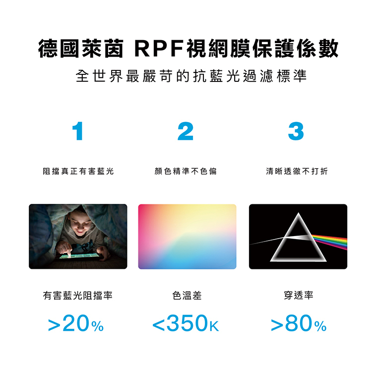 ◇真正護眼!全台多位眼科醫師一致推薦,阻擋真正有害藍光 !(RPF20市售德國萊茵認證抗藍光最高等級)