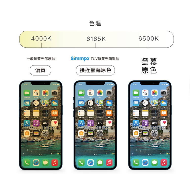 ◇True Color不色偏!色溫差小於350K,最接近原色的抗藍光保護貼。