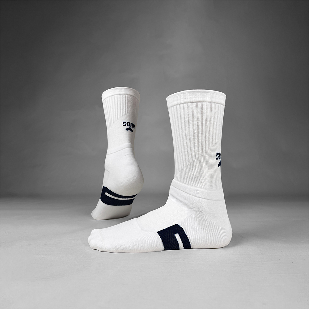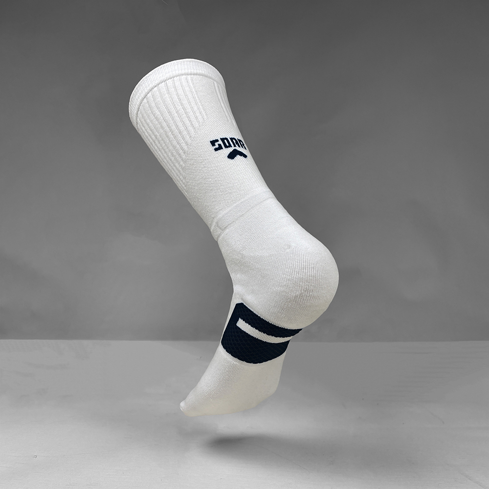 長時間着用されることを想定し、足裏と足首から上にゾーンクッショニングを追加。