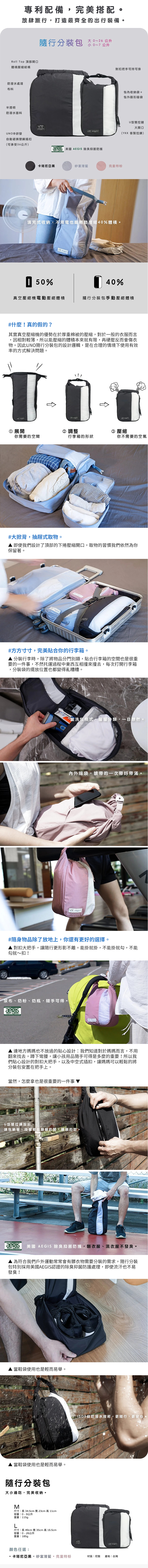 ◇隨行分裝袋可透過捲頂開口的壓縮結構
