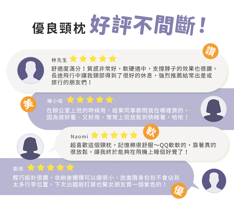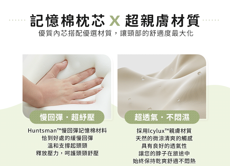 枕心材質記憶棉,建議在旅行結束後將商品攤開平放在陰涼處,避免商品因每個人的收納狀況不同而造成無法恢復彈性的問題。