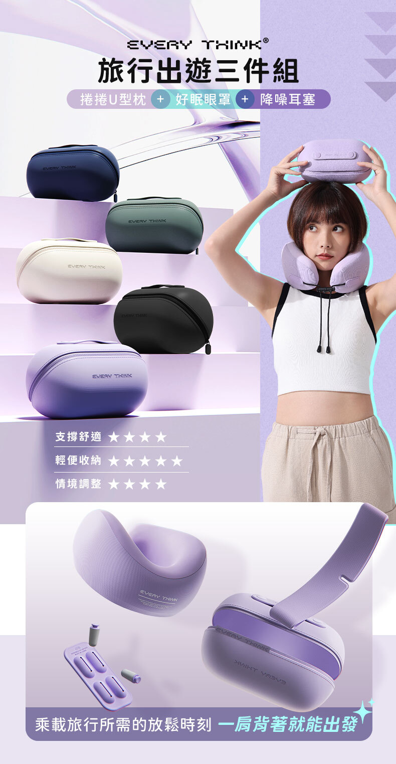 品名:EVERY THINK 旅行出遊三件組 (U型枕+眼罩+耳塞)