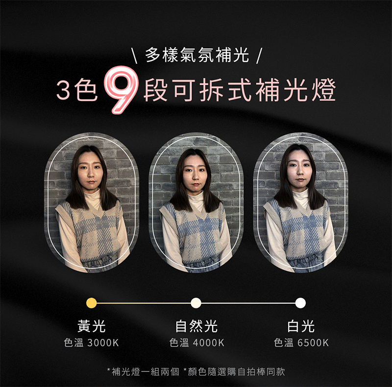 ◇補光燈共三色九段,隨裝隨用隨心控制